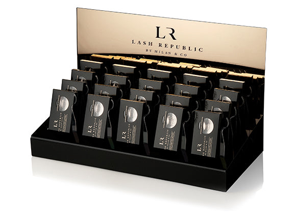 3 retail units per style with adhesive (36 lash sets) marketing material